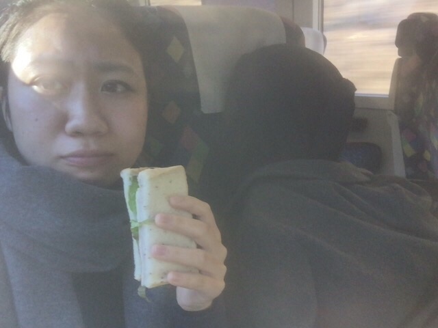 隣のめぐみちゃんは寝る体勢に入りました。私は朝ご飯中。昨日、iPhoneの画面が割れたので自撮りすると白っぽくなります。 あずさ yui