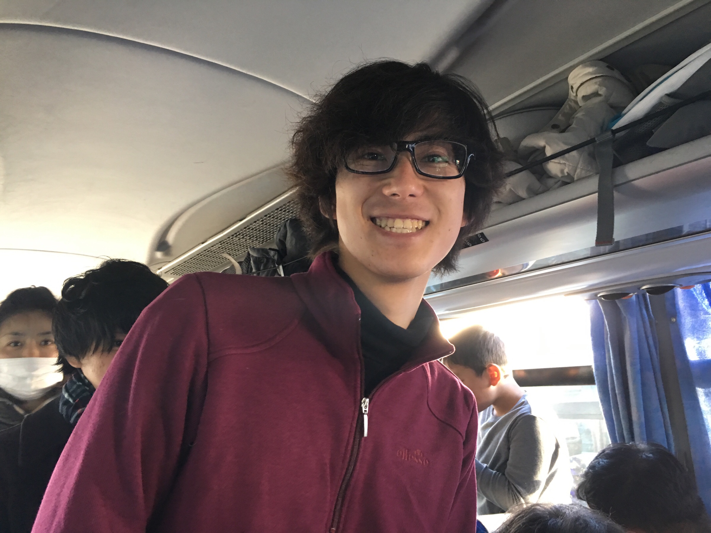 初参加のなつかくん! 今回はスノーボードもします。 アンテオケバス 1号車
