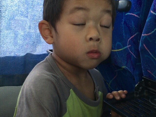 しおちゃんパン食べ始めました、 影絵のようです(^^) アンテオケバス1号