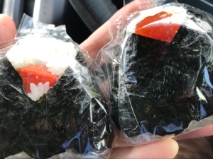 帰りにオニギリ食べました。美味しかったです♬