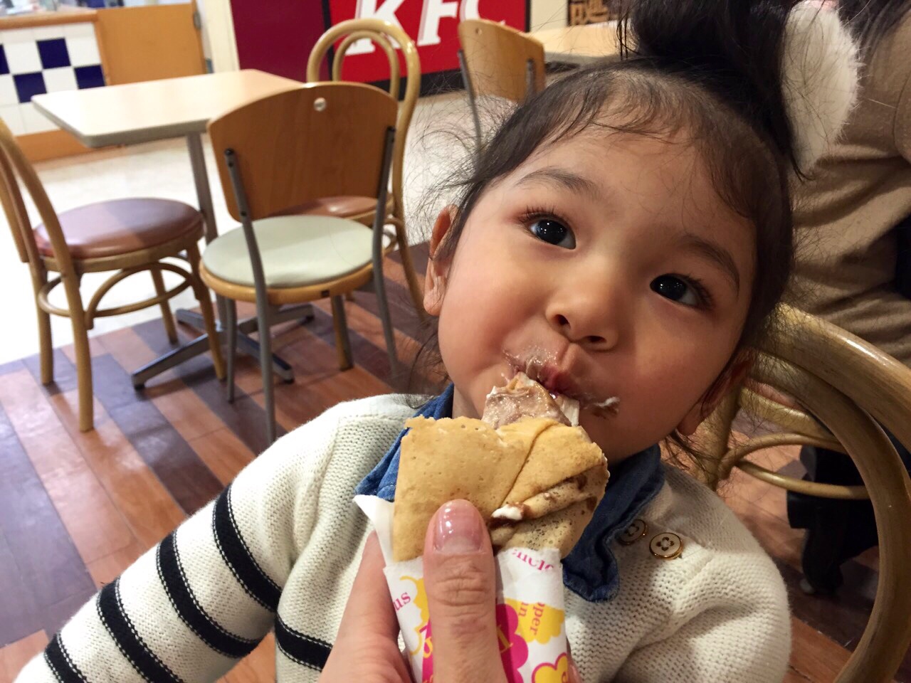 LIVE後、ミヅキちゃん達とクレープへ♪ でも、みんな時間が無く食べながら帰ることに。一緒に食べれなくて寂しい〜( ˘•ω•˘ ) と言ってる瞬間の美梨愛だそうです 苦笑 でもでも一番小さい美梨愛にみんな良くしてくれたそうです☆ ありがとう