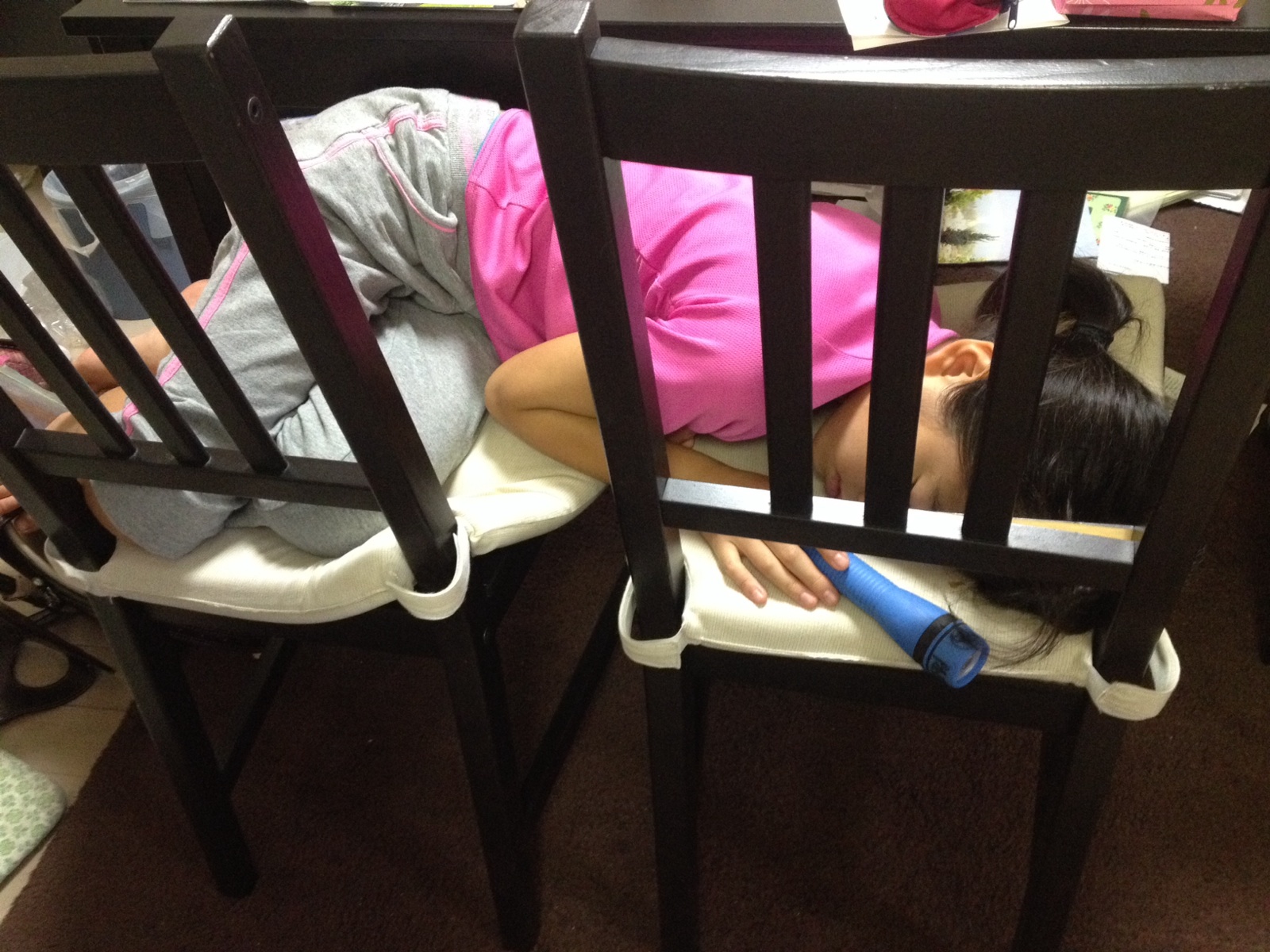 宿題するつもりだったらしいですが…寝ちゃってます。何故か懐中電灯を握りしめて。。。