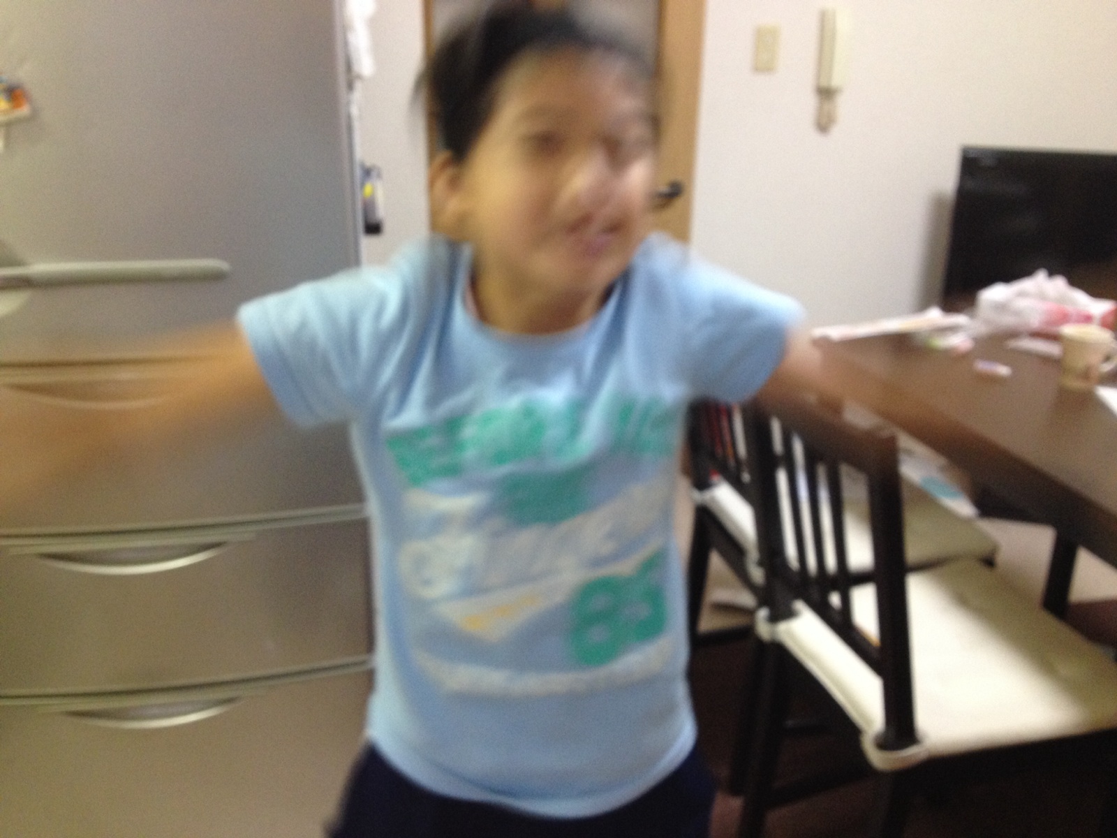 髪の毛が邪魔なので豚のしっぽみたいに結んで気合いを入れます(笑)!(^^)v