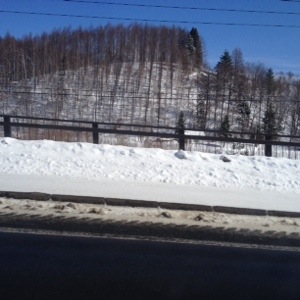 山肌に雪が積もります。木々に積もる本州とはひとあじ違う風情があります。