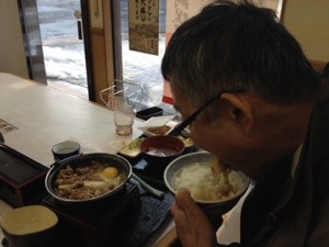 少し早い夕飯となりました。 吉◯屋で、牛すき鍋です。 パウロ牧師は、肉大盛りです。