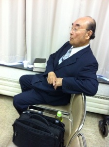 内田牧師、聞き入っています