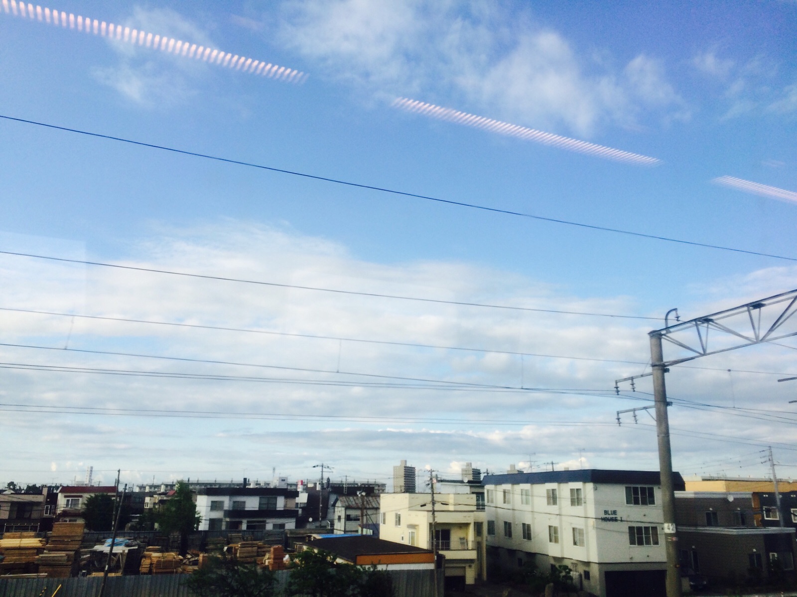 空港が近いので飛行機が飛んでるのが見えます。JRの方が速いような気がしましたが、勿論錯覚です。