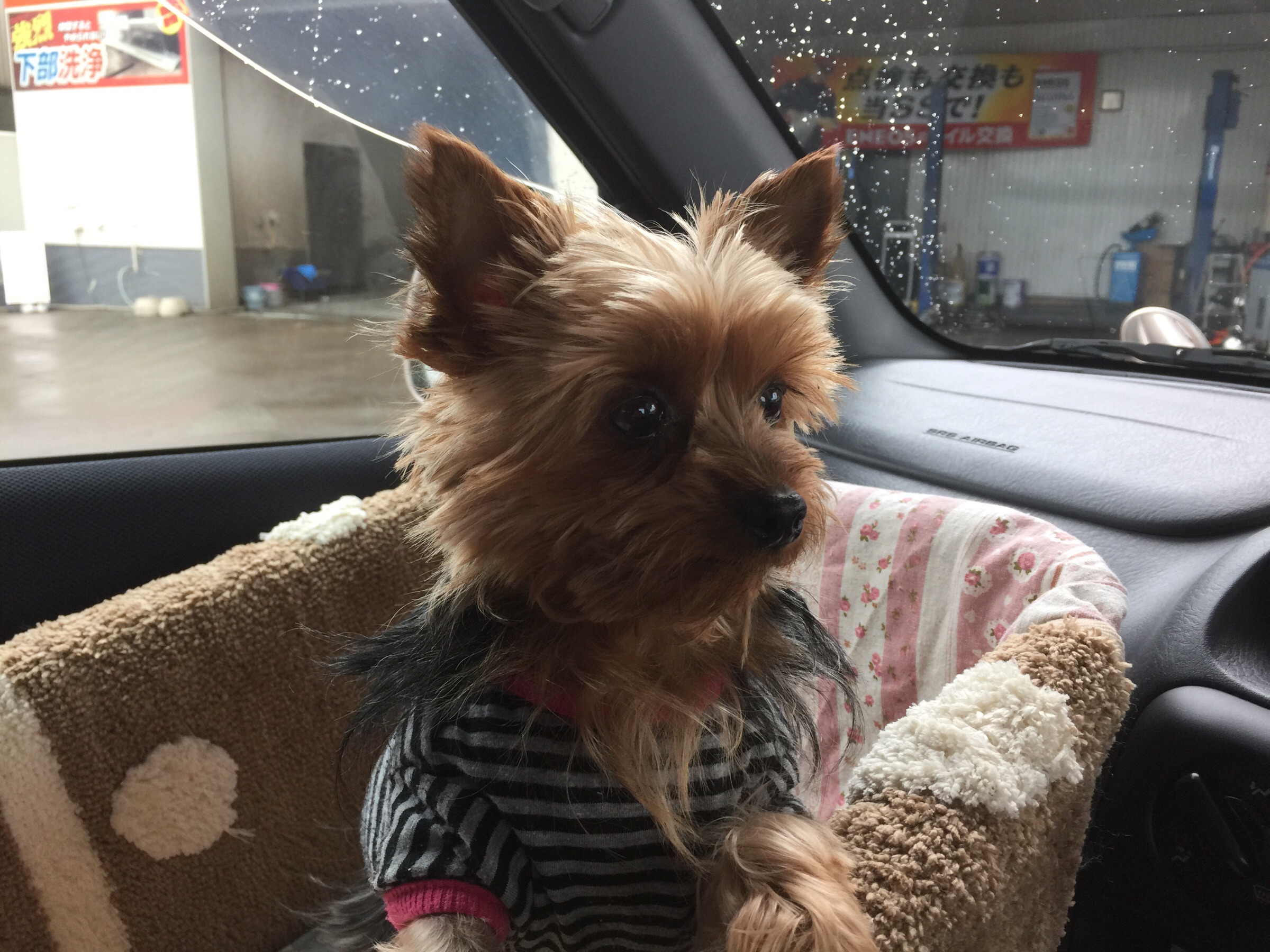 リブちゃんを乗せて、ガソリンスタンドに行ってきました。小雨模様