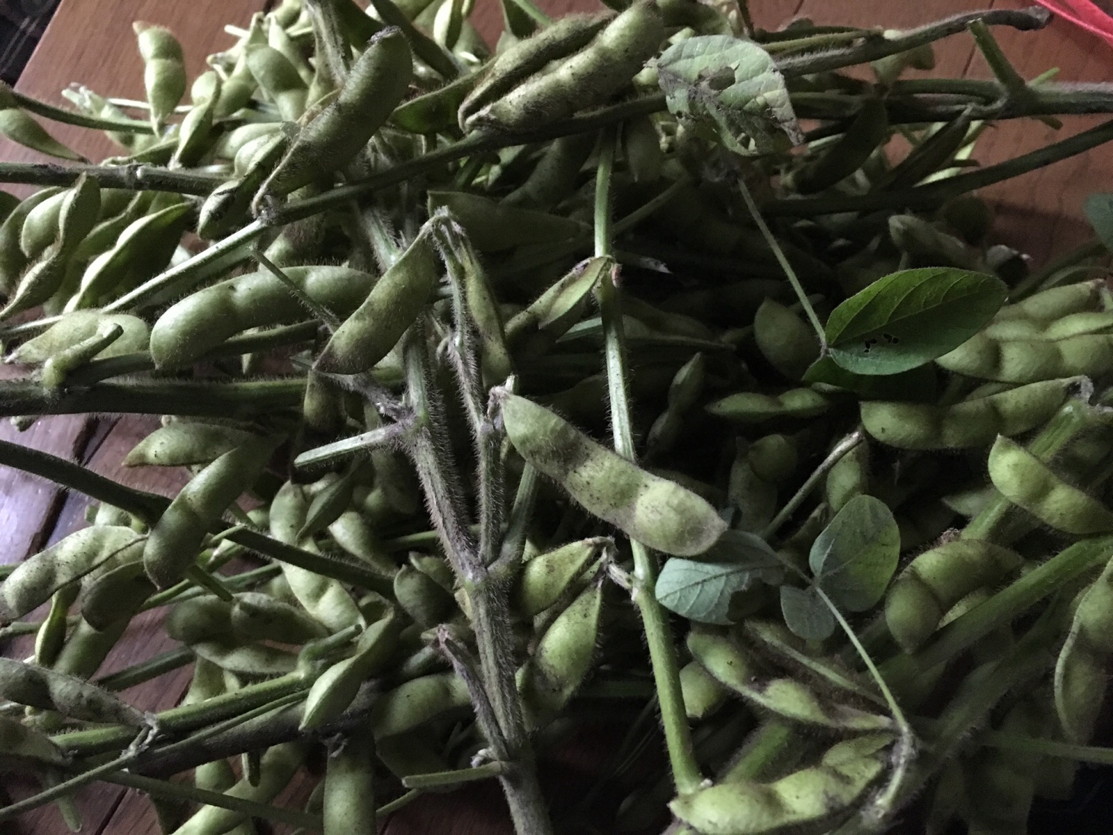 枝豆 もぎ立て、コイケさんのお母さんが丹精込めて育てました。感謝!