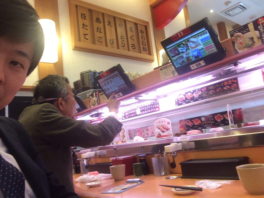 お昼はかっぱ寿司です! 発祥の地との話が。