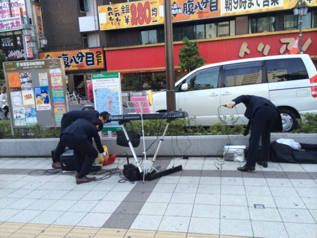 運転手兼ブロガーの笠原さん、これから路上ライブです。