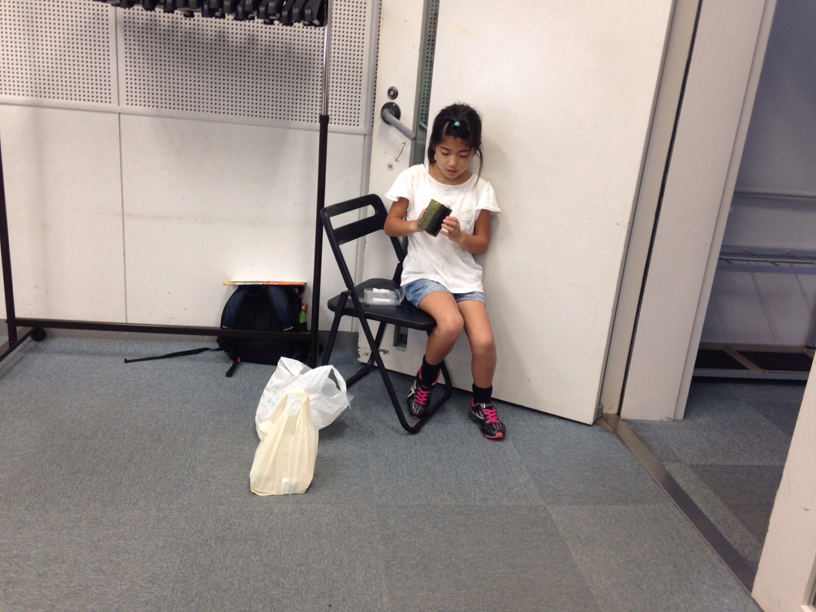 今日洗礼式を受ける聖華ちゃん。お母さんと一緒に早くから会場入りしています。