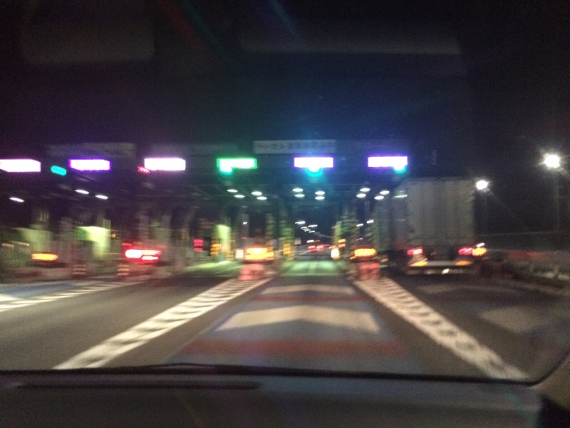料金所、通過! さすが、夜中は道がすいて、スムーズ! 遅いのは、休憩、山ほど取ったからですね(^^;; peter