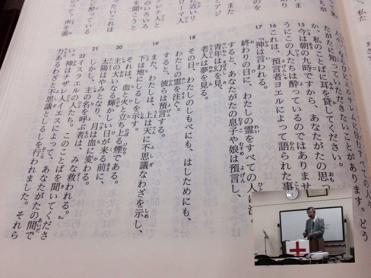 聖書箇所 使徒の働き 2章 16節〜21節が開かれました。 Kobayashi