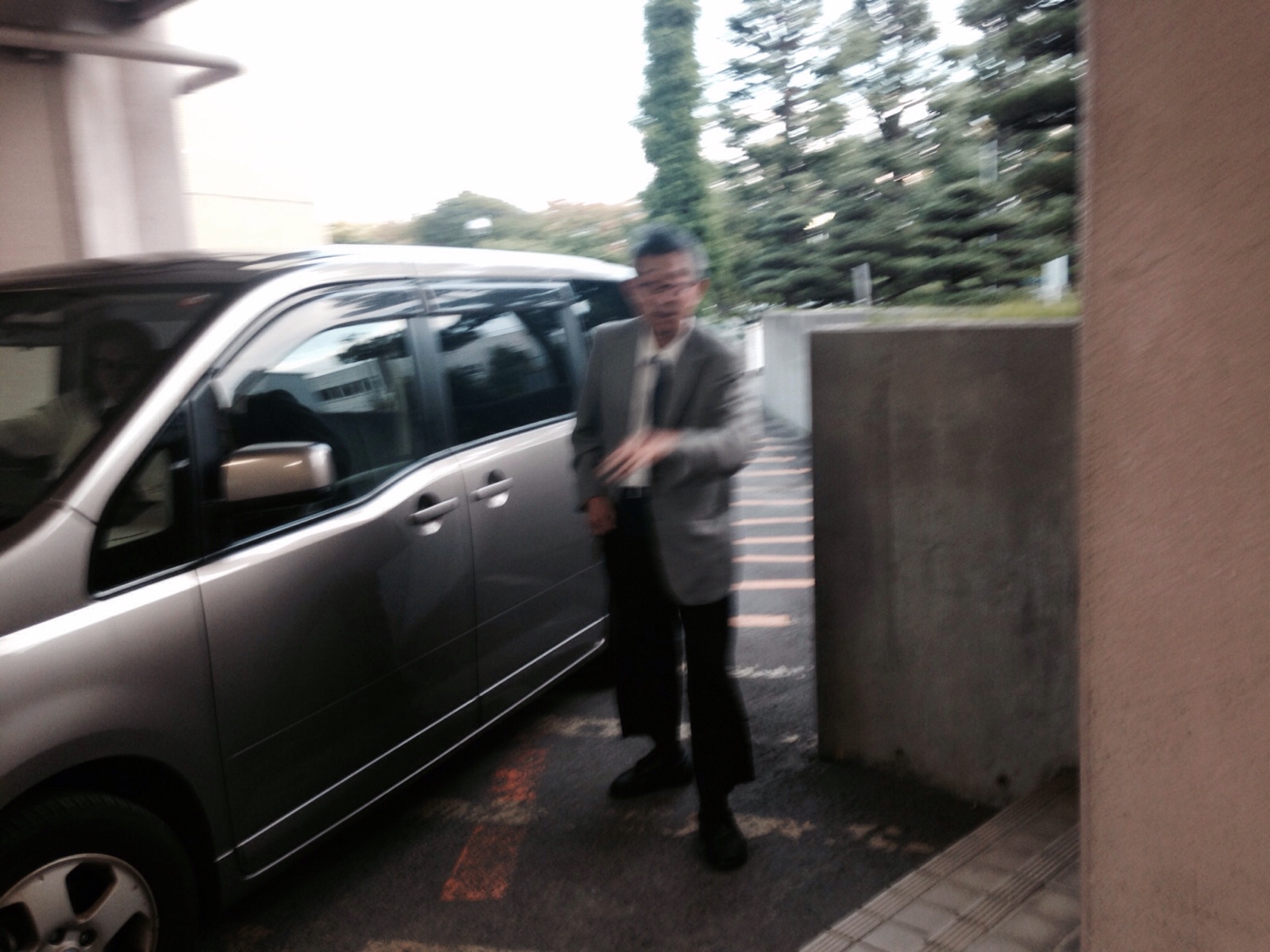 秋元さん、福島聖会の会場に到着されました。 Kobayashi