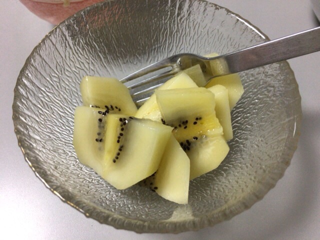 さっき食べた、スーパーで30円引きだったキウイが美味しかったです!