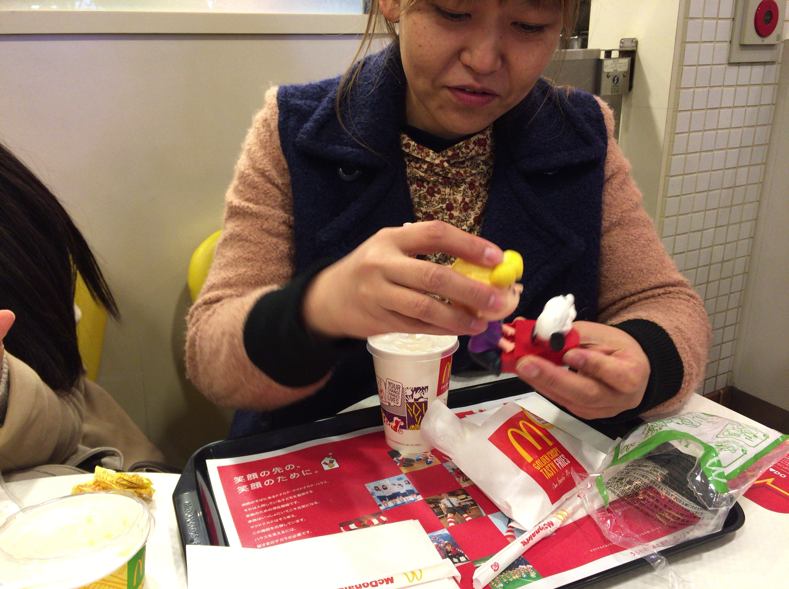ハッピーセットのおもちゃが気に入った様子のゆみさん!