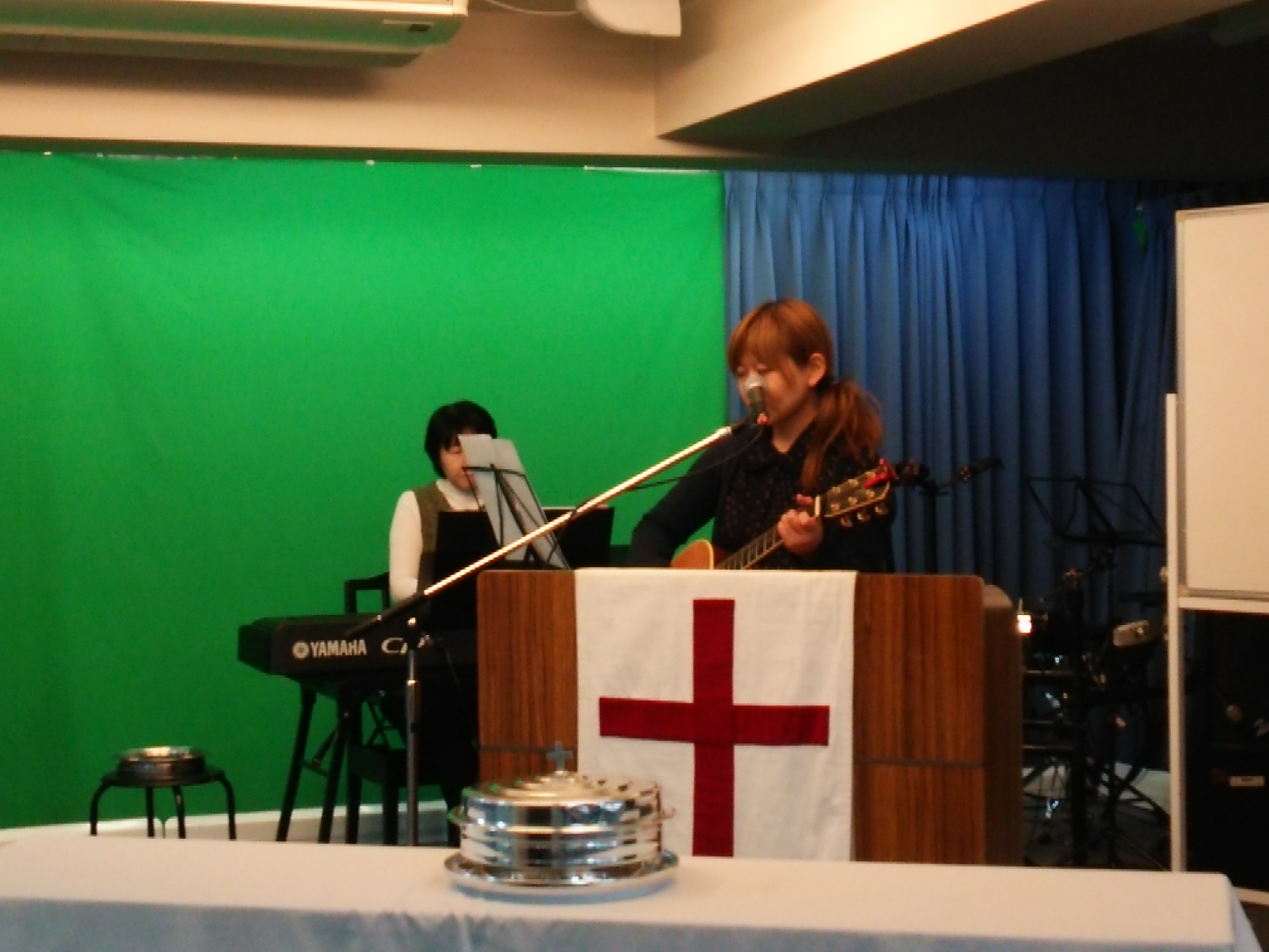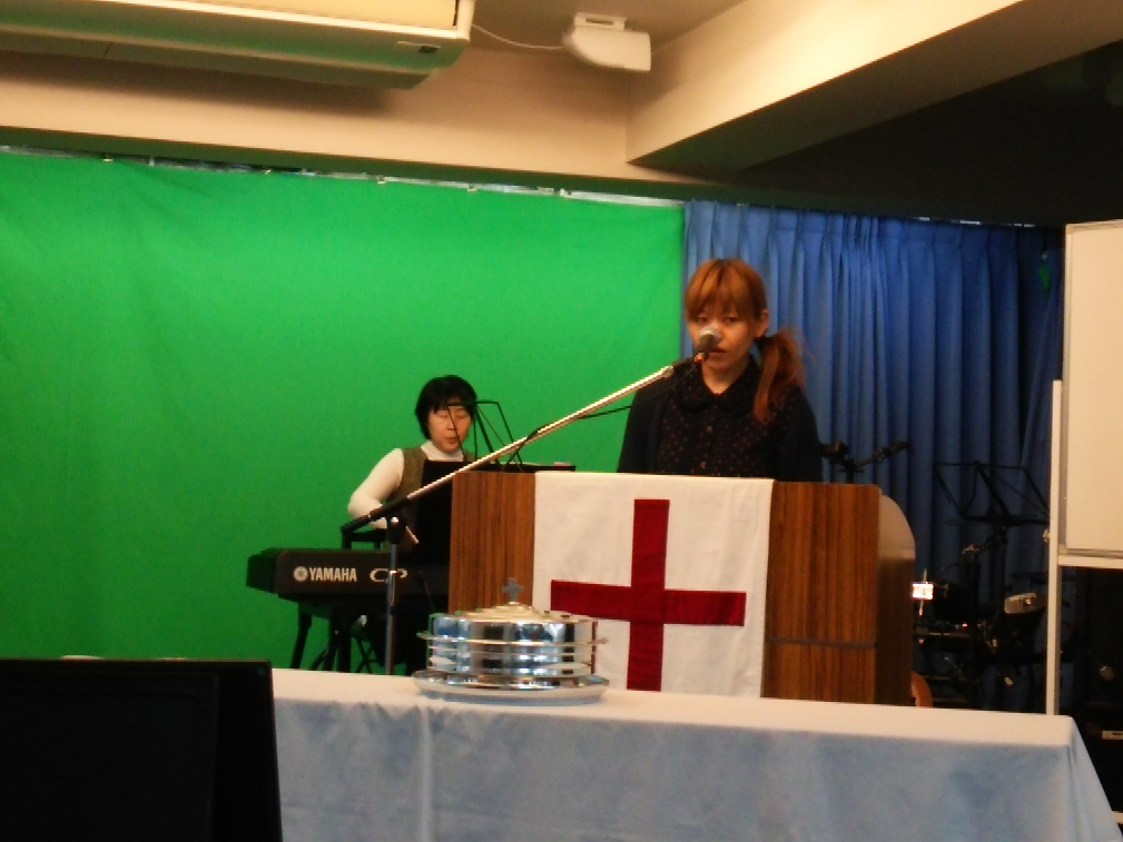 会堂で行われる、礼拝では、由美ちゃんは、司会、賛美の御奉仕をしています!