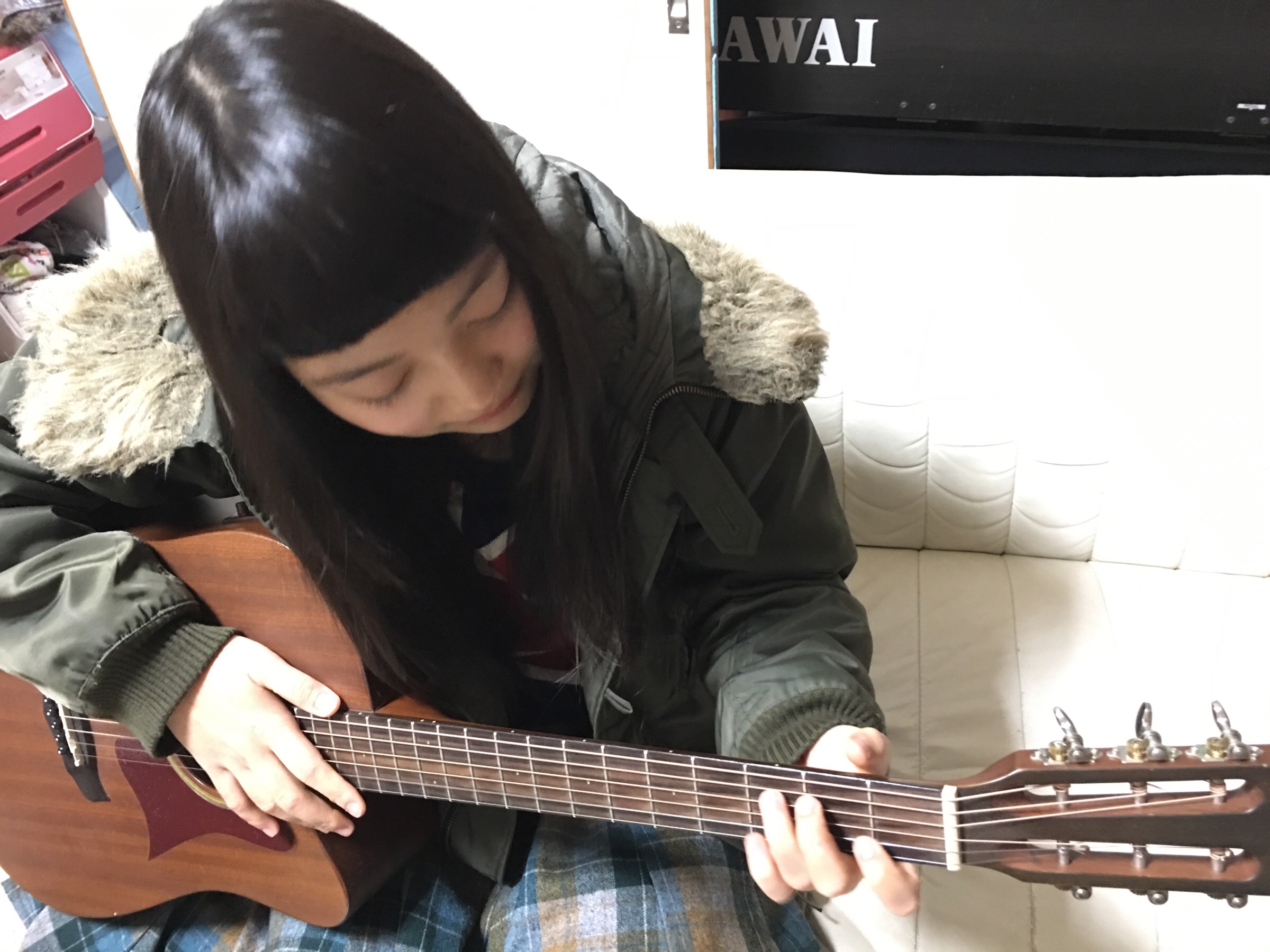 今日のステージに備えて?ギター練習中のいっちゃん!