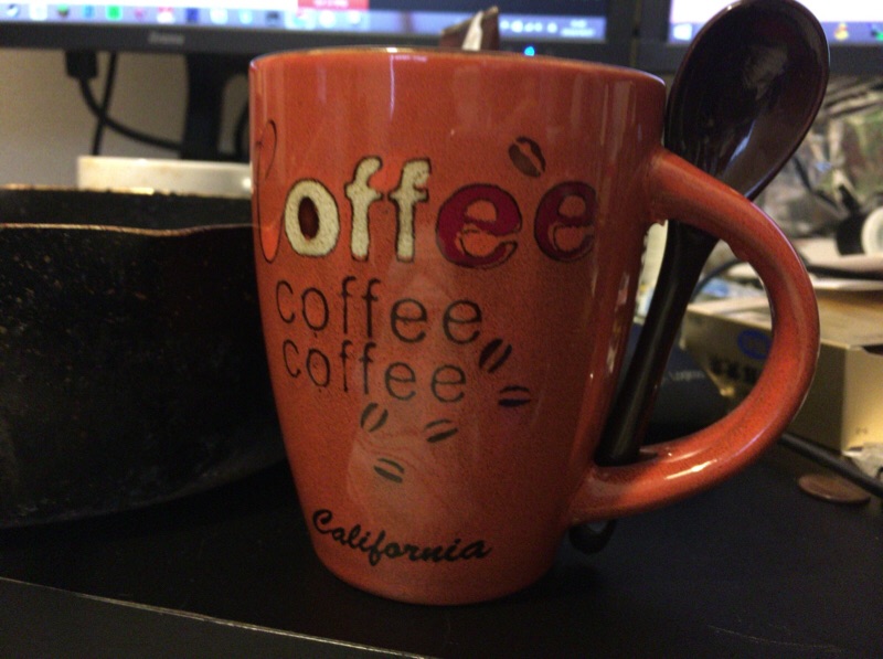 おはようございます。1分遅れましたが、アメリカで買ったコーヒーカップにお茶入れて早天スタートします。