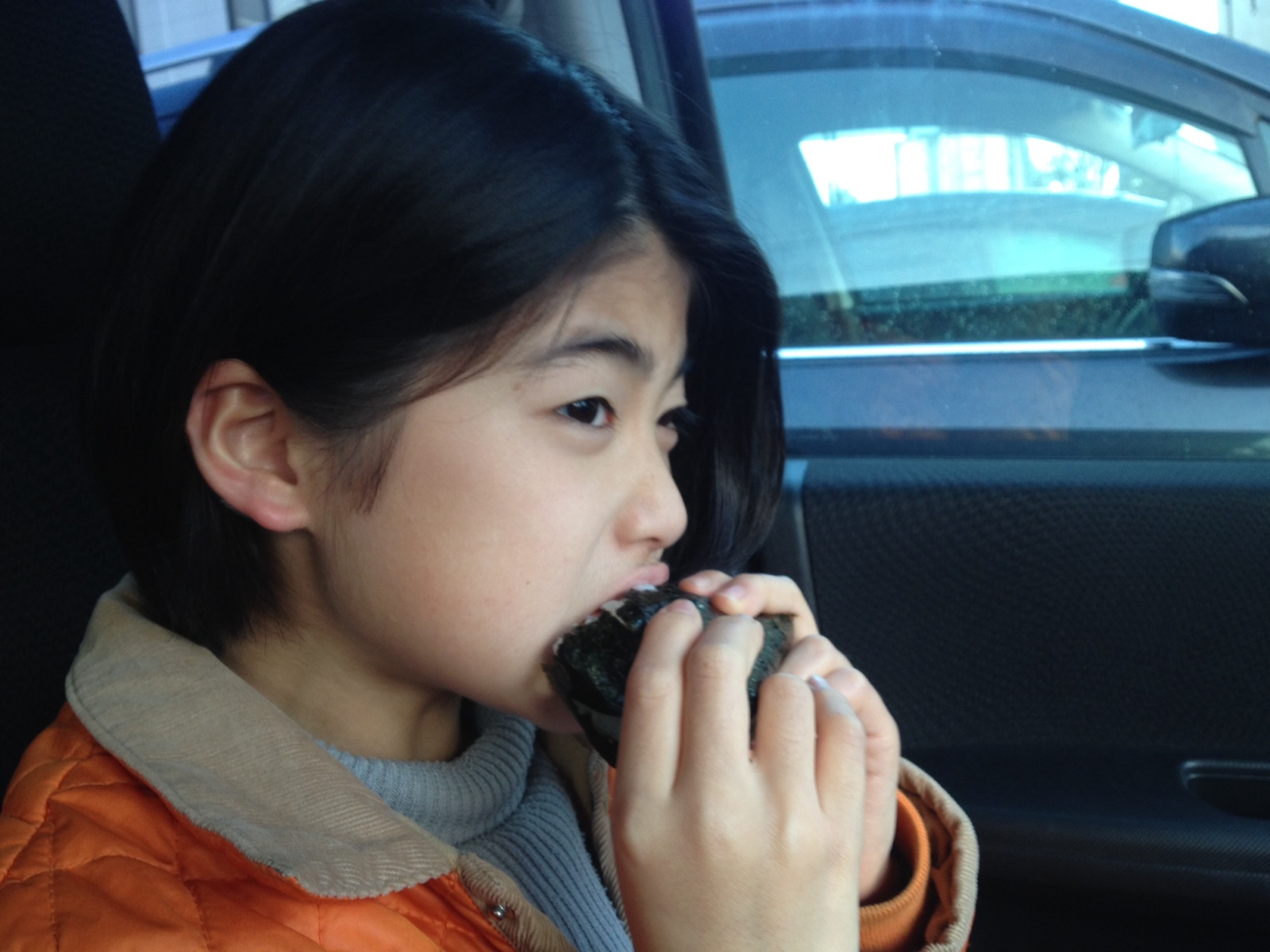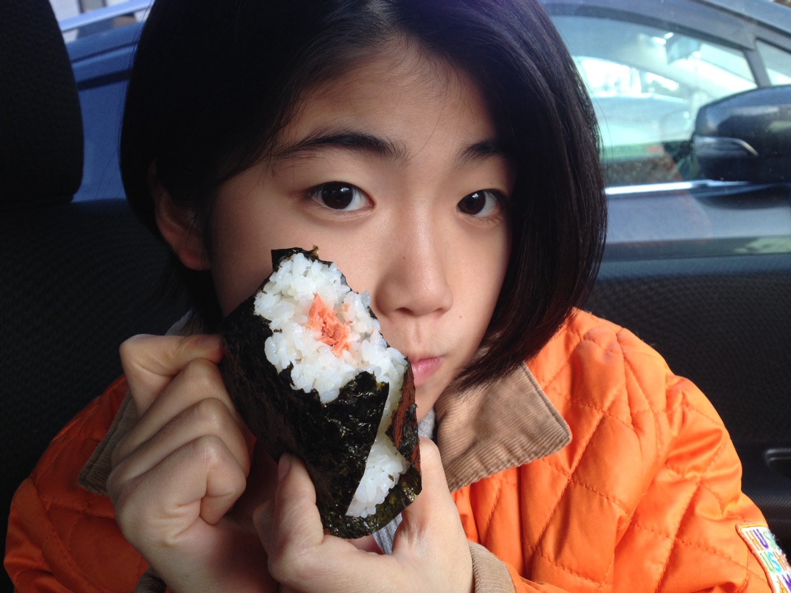 お腹すいてシャケおにぎり食べてます。