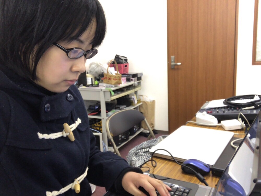 寒いのでお気に入りのダッフルコートを着てホームページの更新!