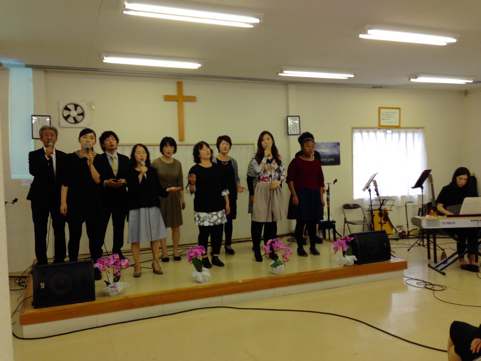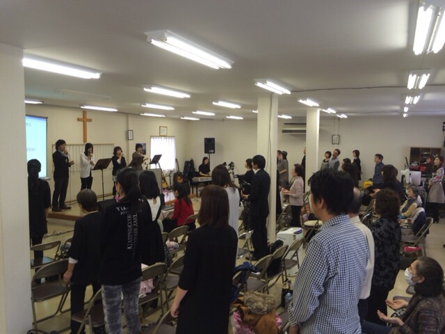 第二礼拝 前半賛美のため練習しています。