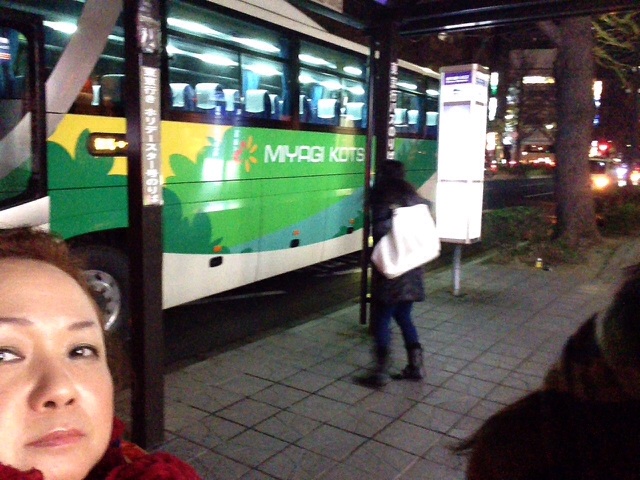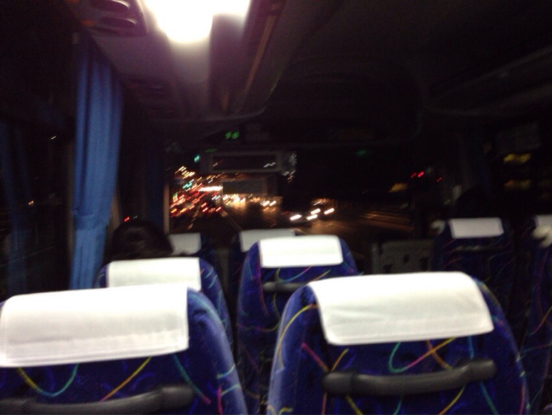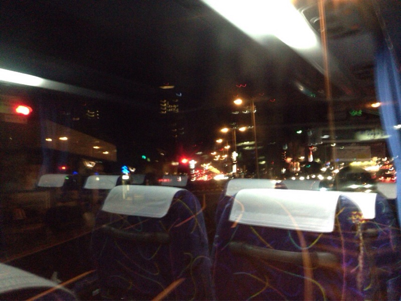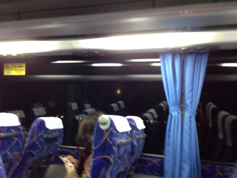 21時28分に着きます。 バスの中から撮りますが、真っ暗で何も見えません。 mariko