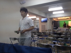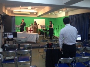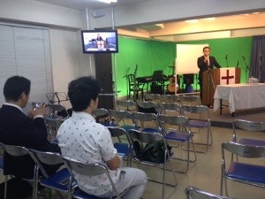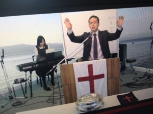 只今、聖餐式の時! ジョセフ前田さんが導いています。