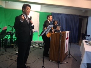 後半の賛美へ! ジョセフ前田さんが賛美を導きます。