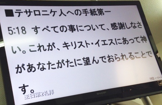 メッセージの聖書箇所は、 Ⅰテサロニケ5:18からです。