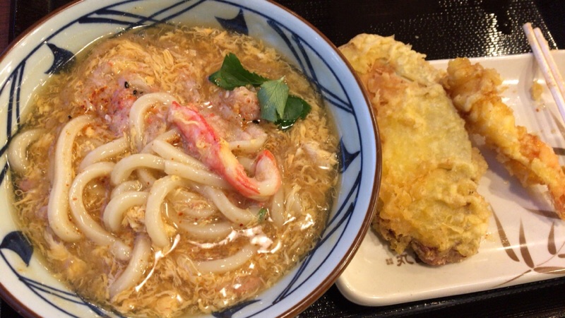 買い物に行った帰り (笑) 丸亀で、かに玉と、お芋の天ぷら、エビの天ぷら。
