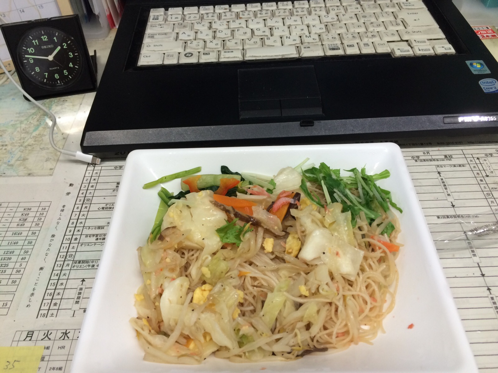 昼食はビーフンです。机上のパソコンでニュース見てますが、沖縄は台風で大変ですね。 テモテ