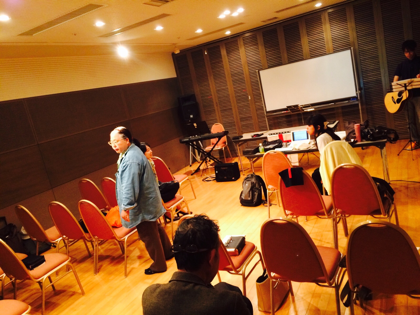 イスを並べたり、機材の準備をしています。