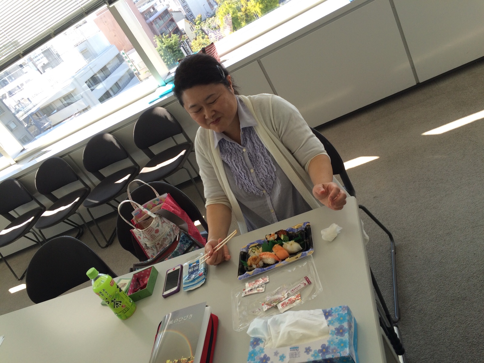 大阪教会の毛内さんです。只今お昼を食べています。 神戸john