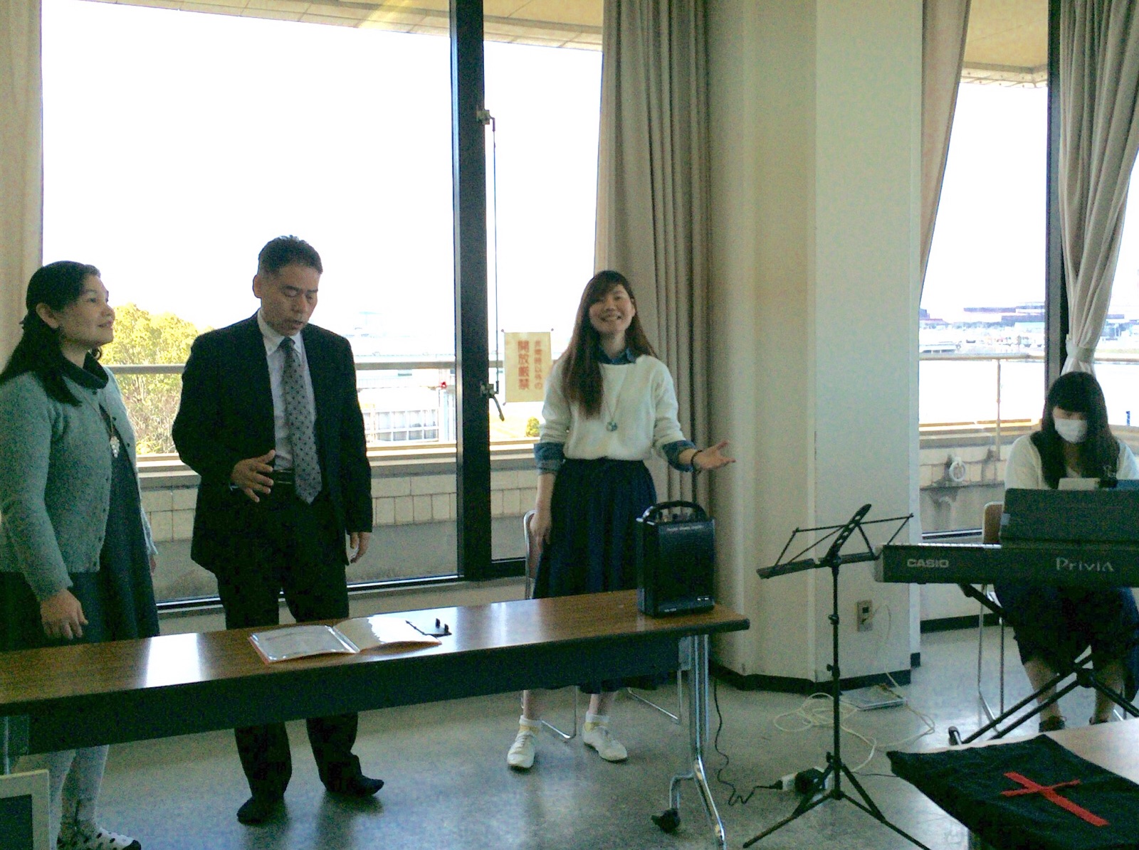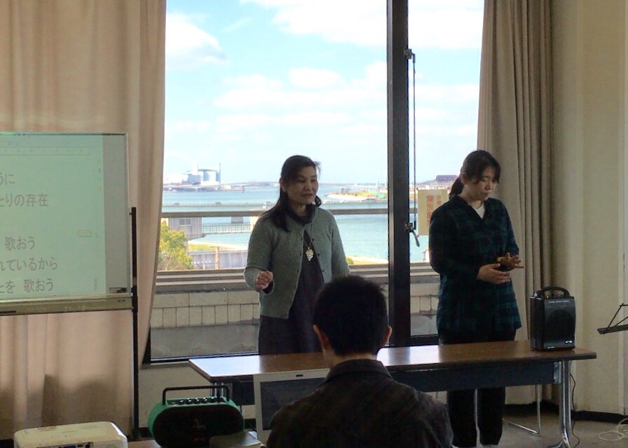 休憩を挟んで後半の聖会スタートです! 桂子と敬子で賛美を導きます♪( ´▽`) 神戸 shion
