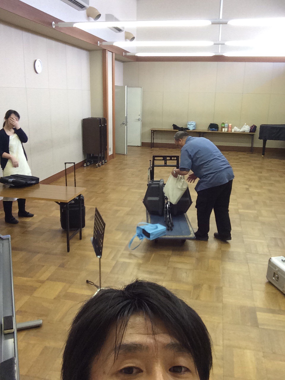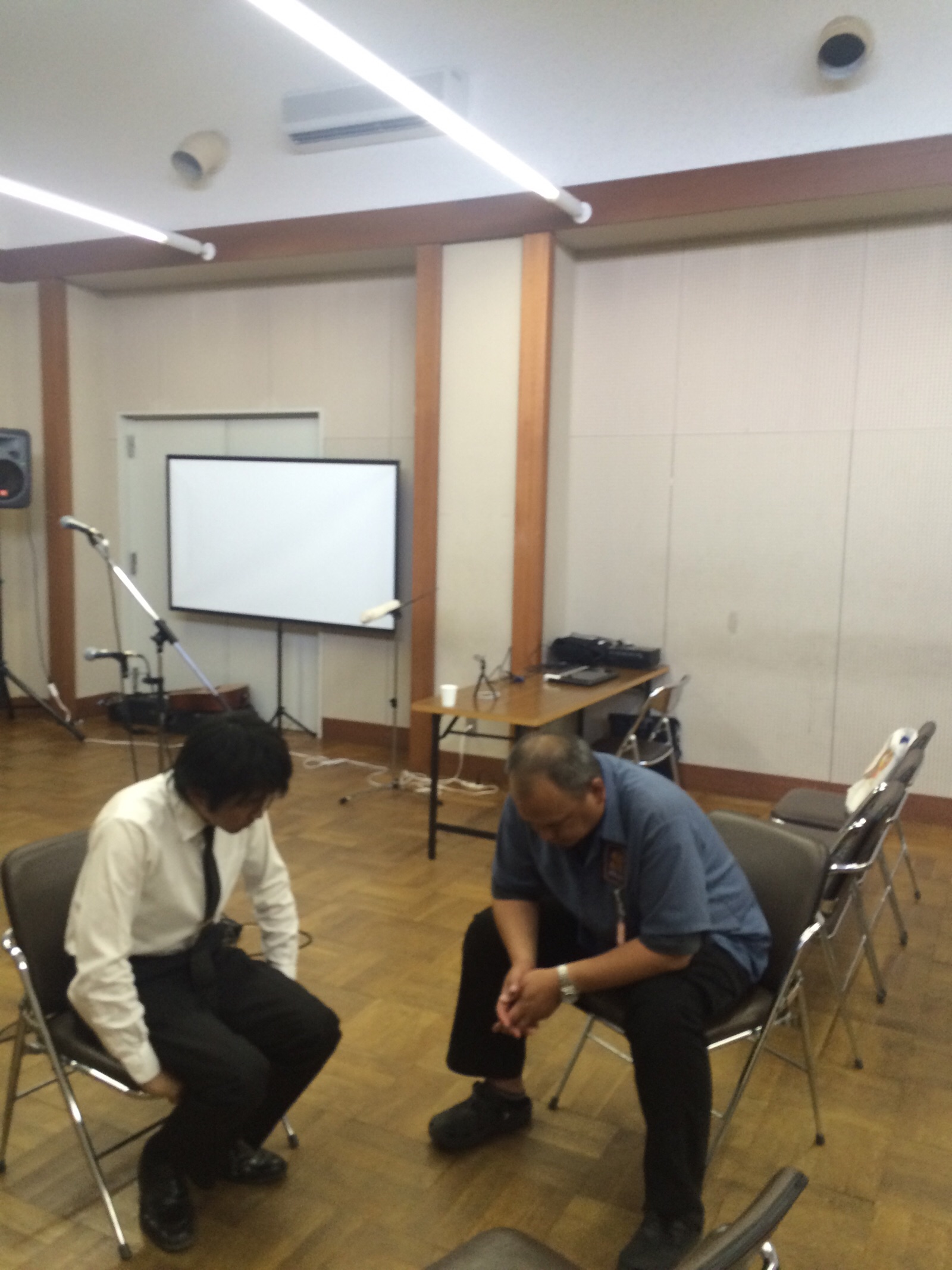 会場に入りました。今日はかなり暑くなってきてるので、水分を取りながら準備します。 タニグチ