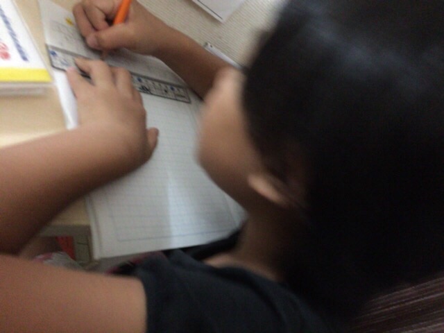 来週の登校日に向けて、宿題奮闘中の娘たち。