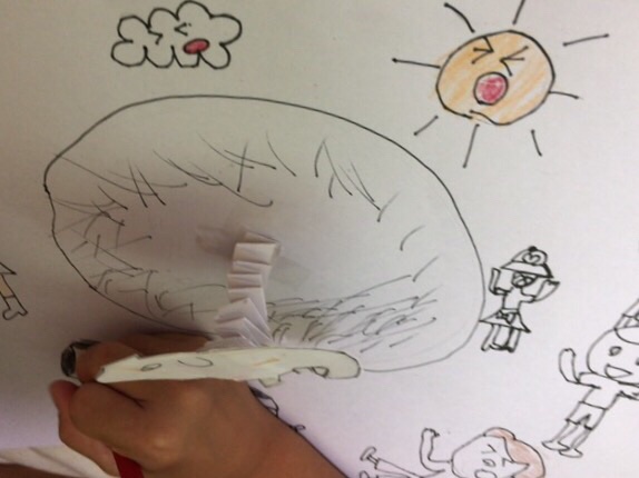 長女は紙芝居作り。賛美しながら紙芝居を作っています。仕掛けがあるみたいです。女の子は双子らしいです。