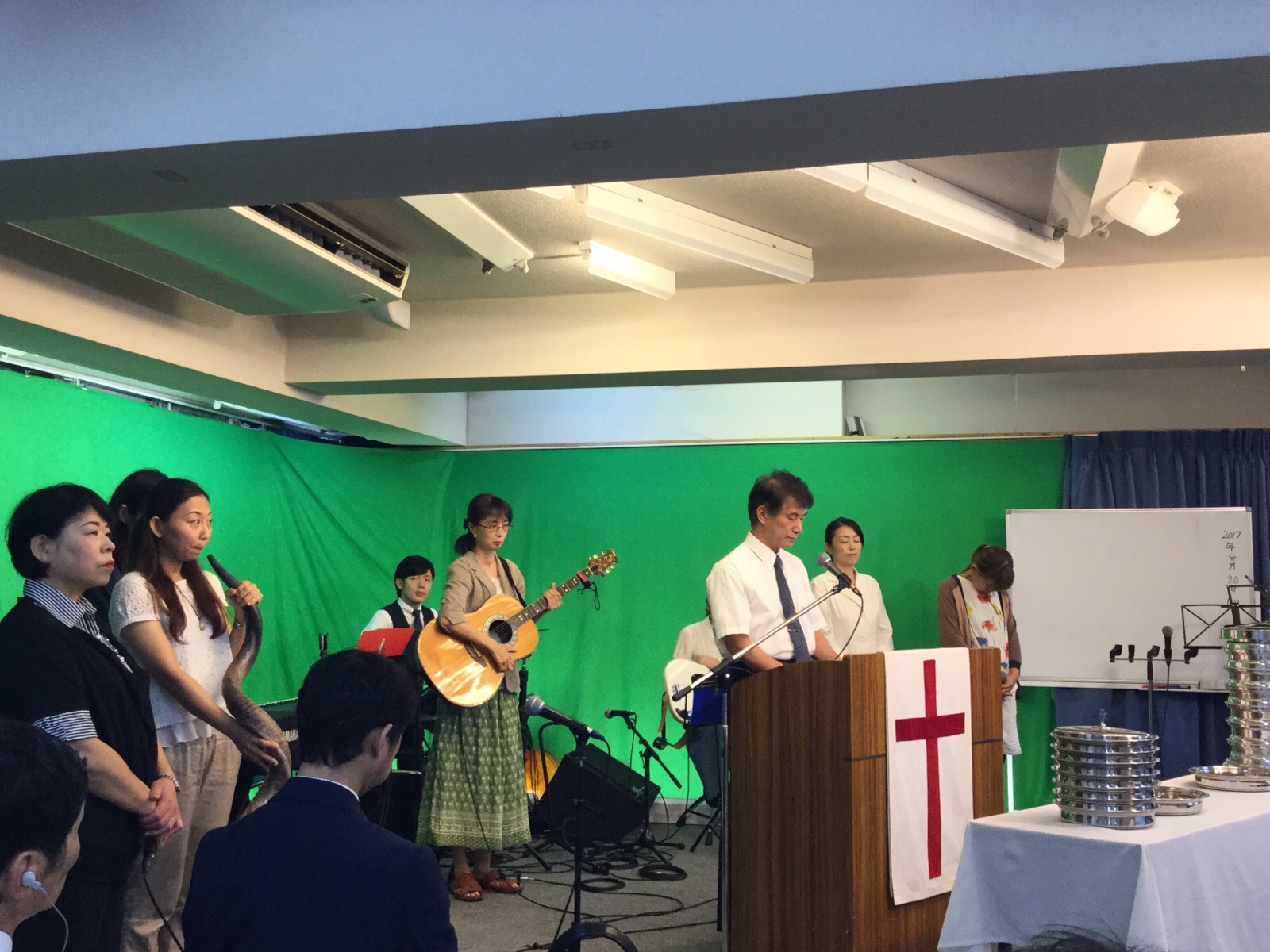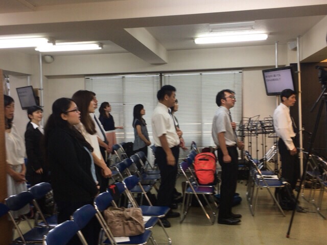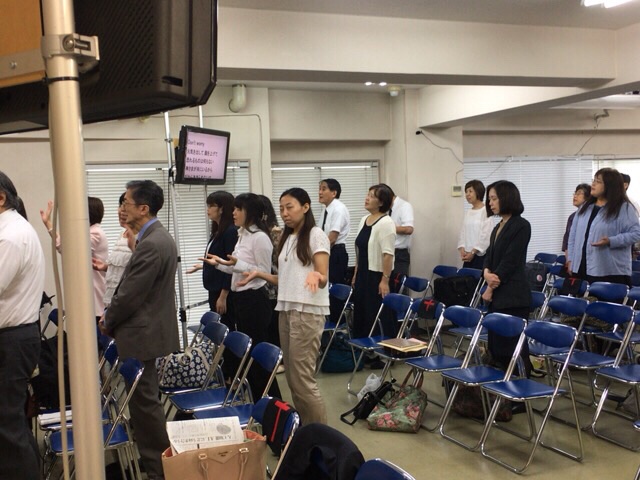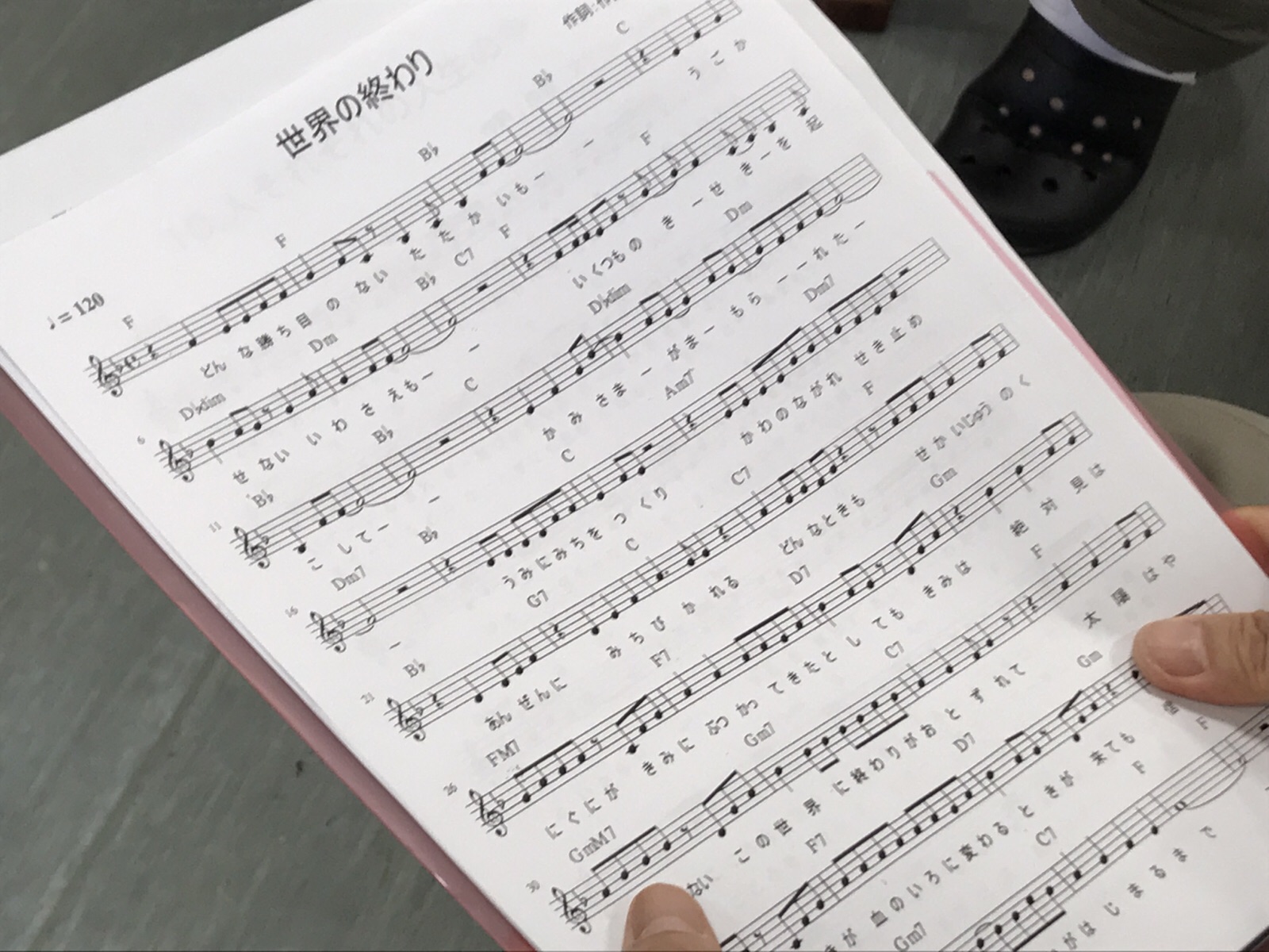 礼拝前のお祈りで「世界の終わり」を賛美しています。新しい賛美がとても楽しみです。