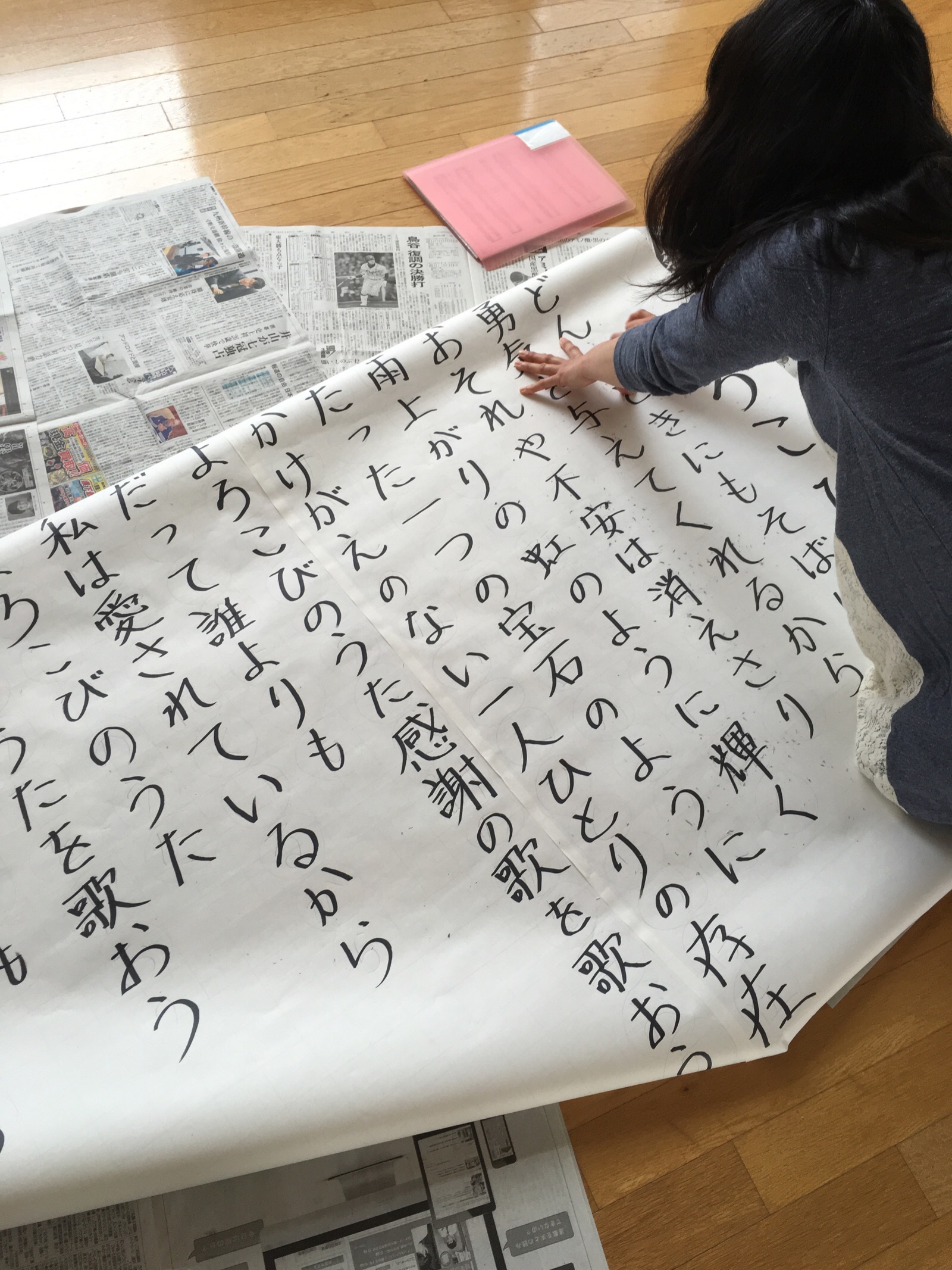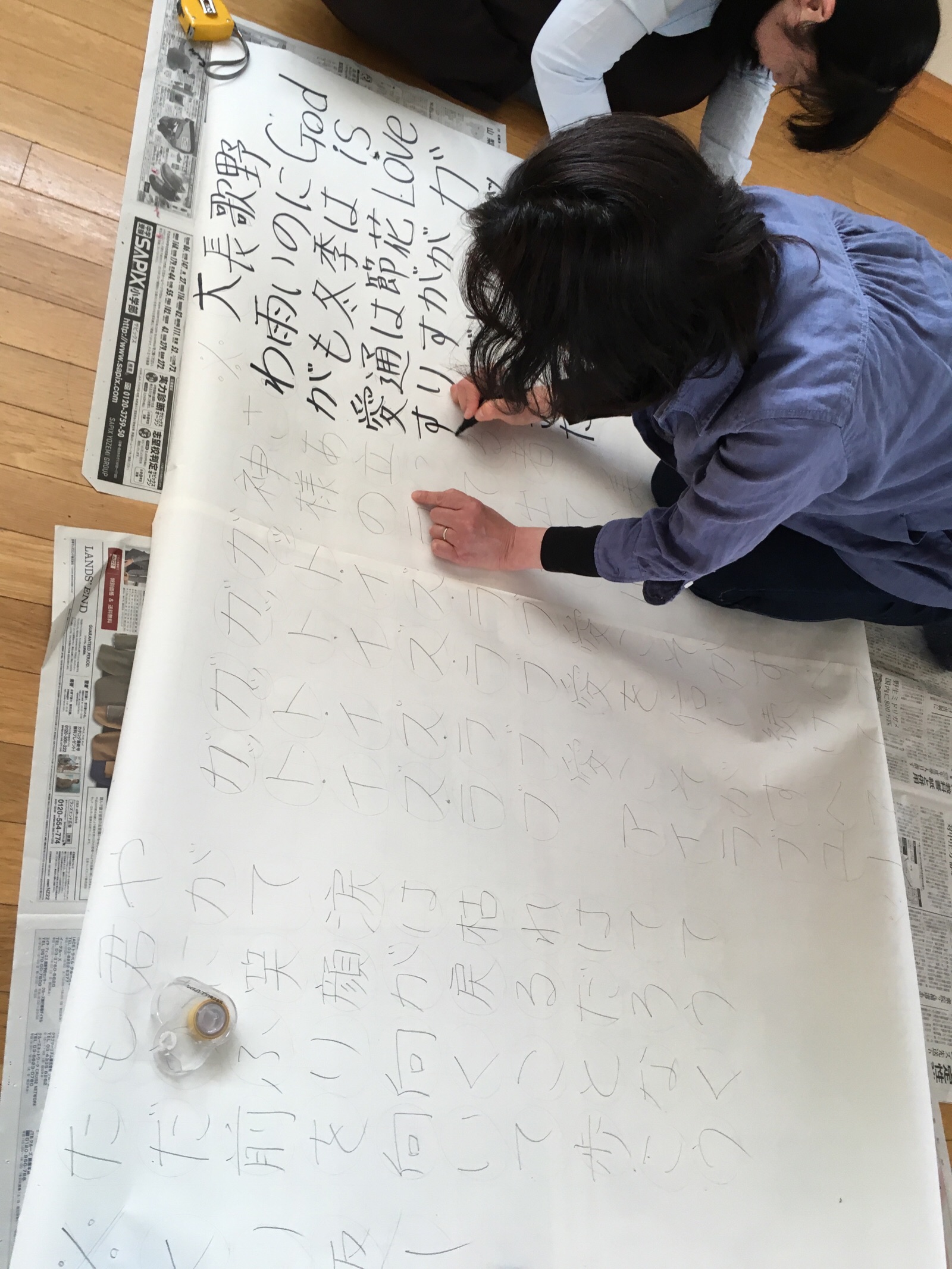 午後のゴスペルクラブで、最近要望の強かったボランティアコンサート用の大判歌詞表示を作っています!