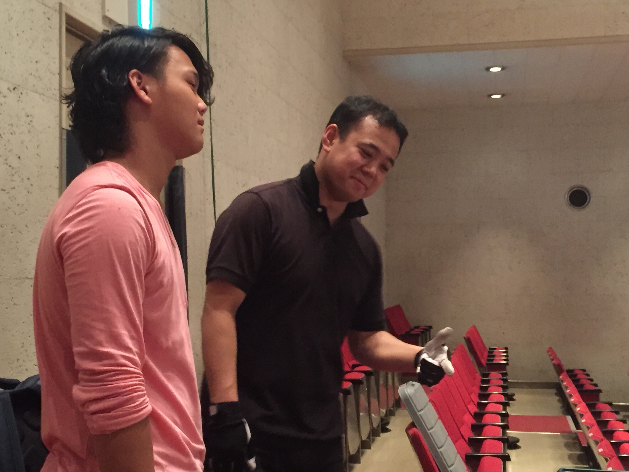 照明下りまーす。間瀬さんセッティング入ります。 Yui