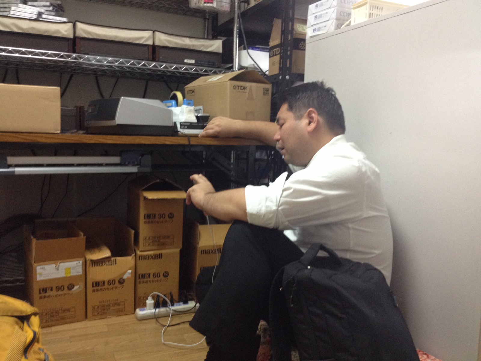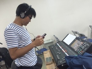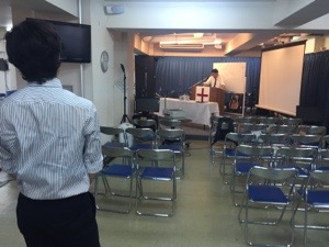 出西さん、PAの調整の為に会堂にこられました。明日のために備えます。