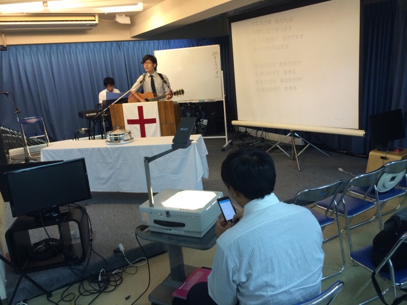 礼拝で仲本くん、キーボード、いい感じです!! peter