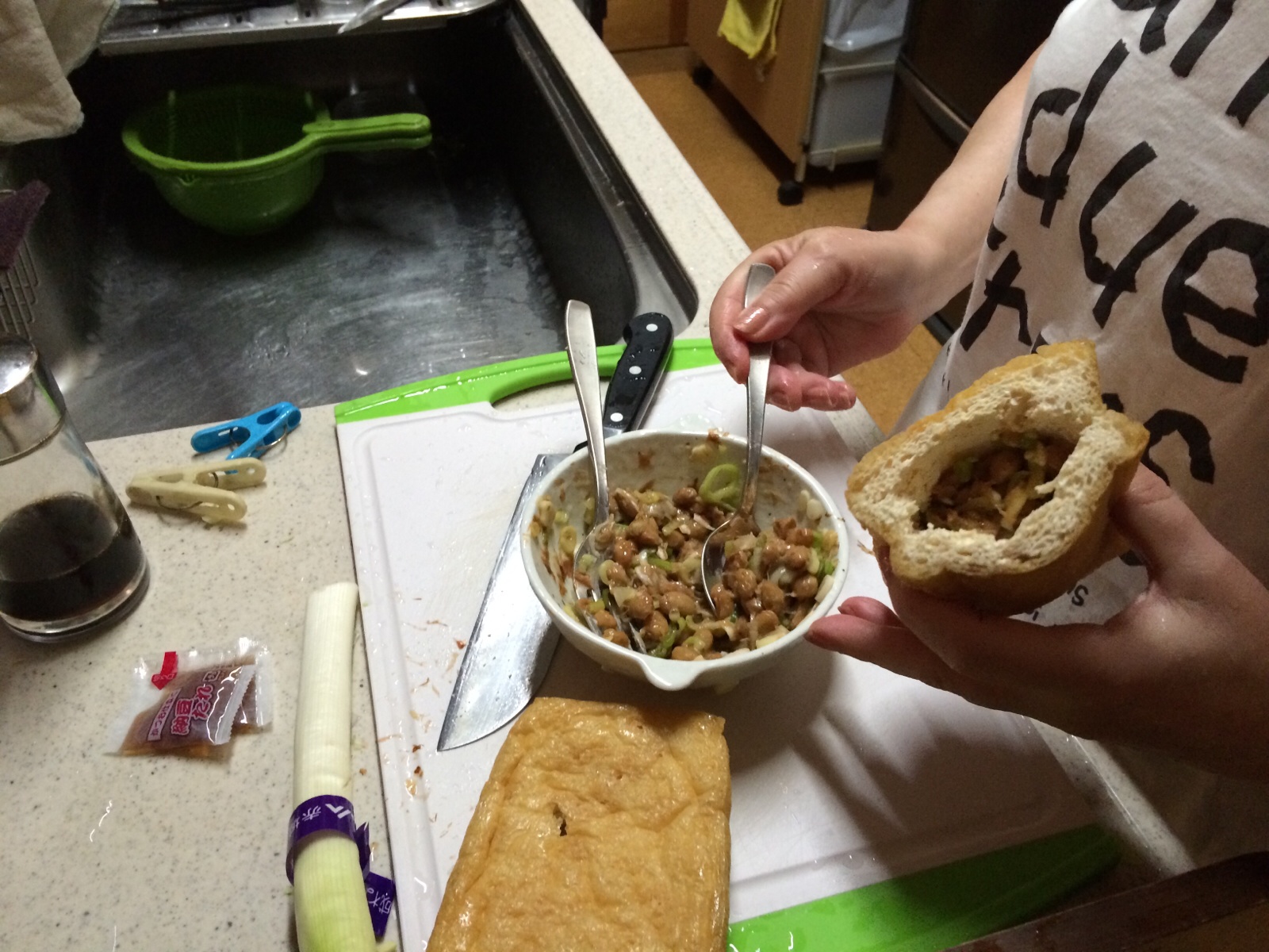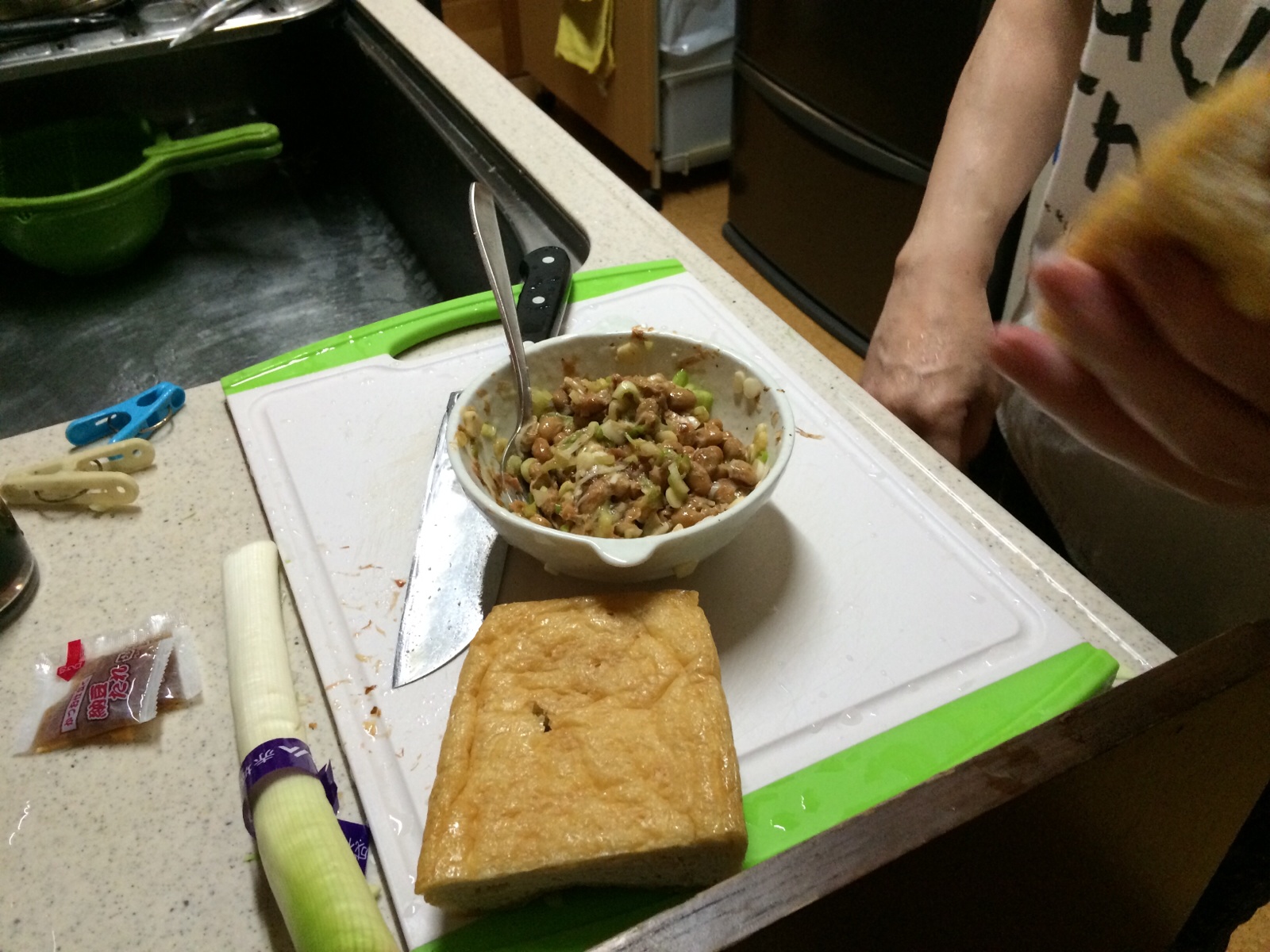 納豆に鰹節とみじん切りのネギを混ぜます。 ミカエル