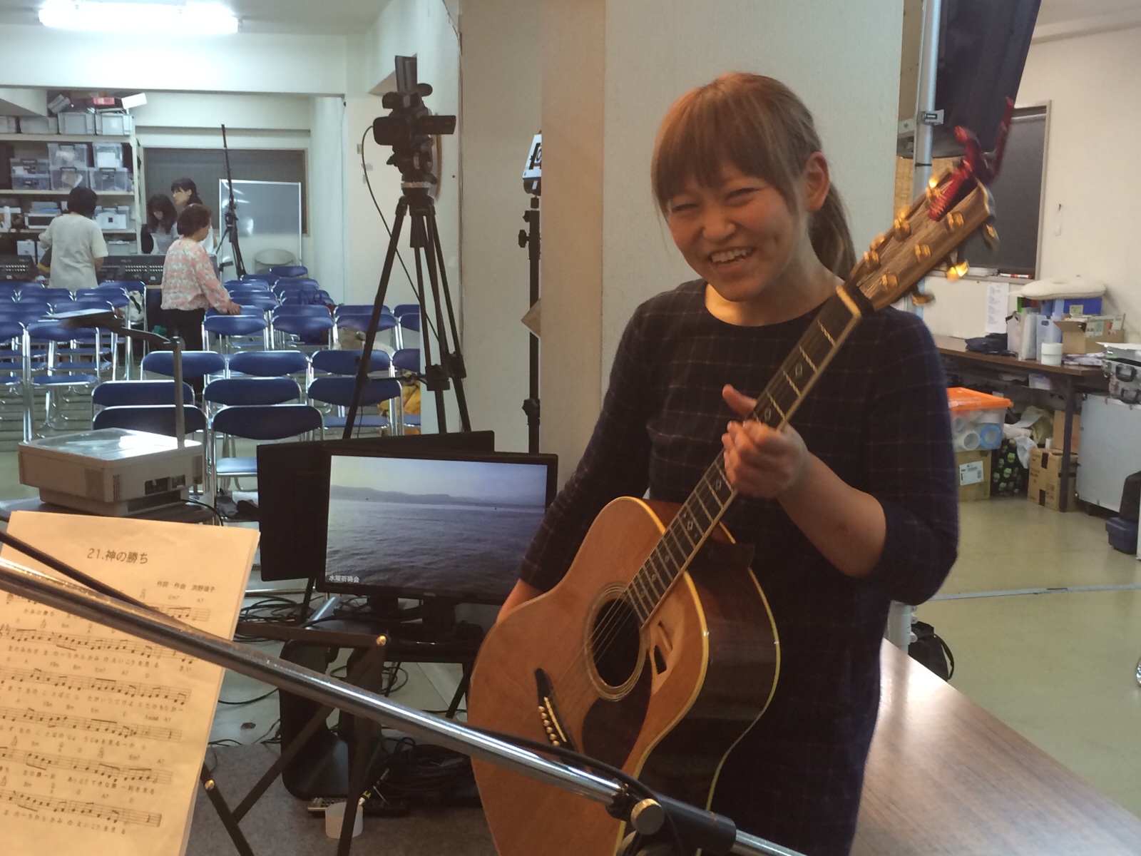 滝田由美ちゃん! やはり賛美の奉仕に、ギターを持って立ちます。 Gifts Kayano