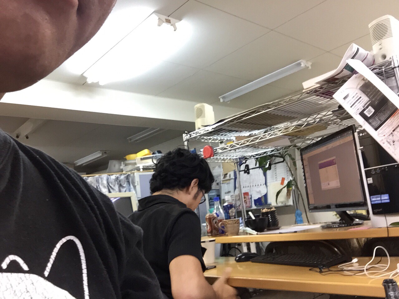 雲の間にある虹出版です。 こころごすぺる当日は歌集を出張販売します。 今日は交代で夏休みのため一人勤務でしたが、星野さんがマンガの作業に来られました。 kato