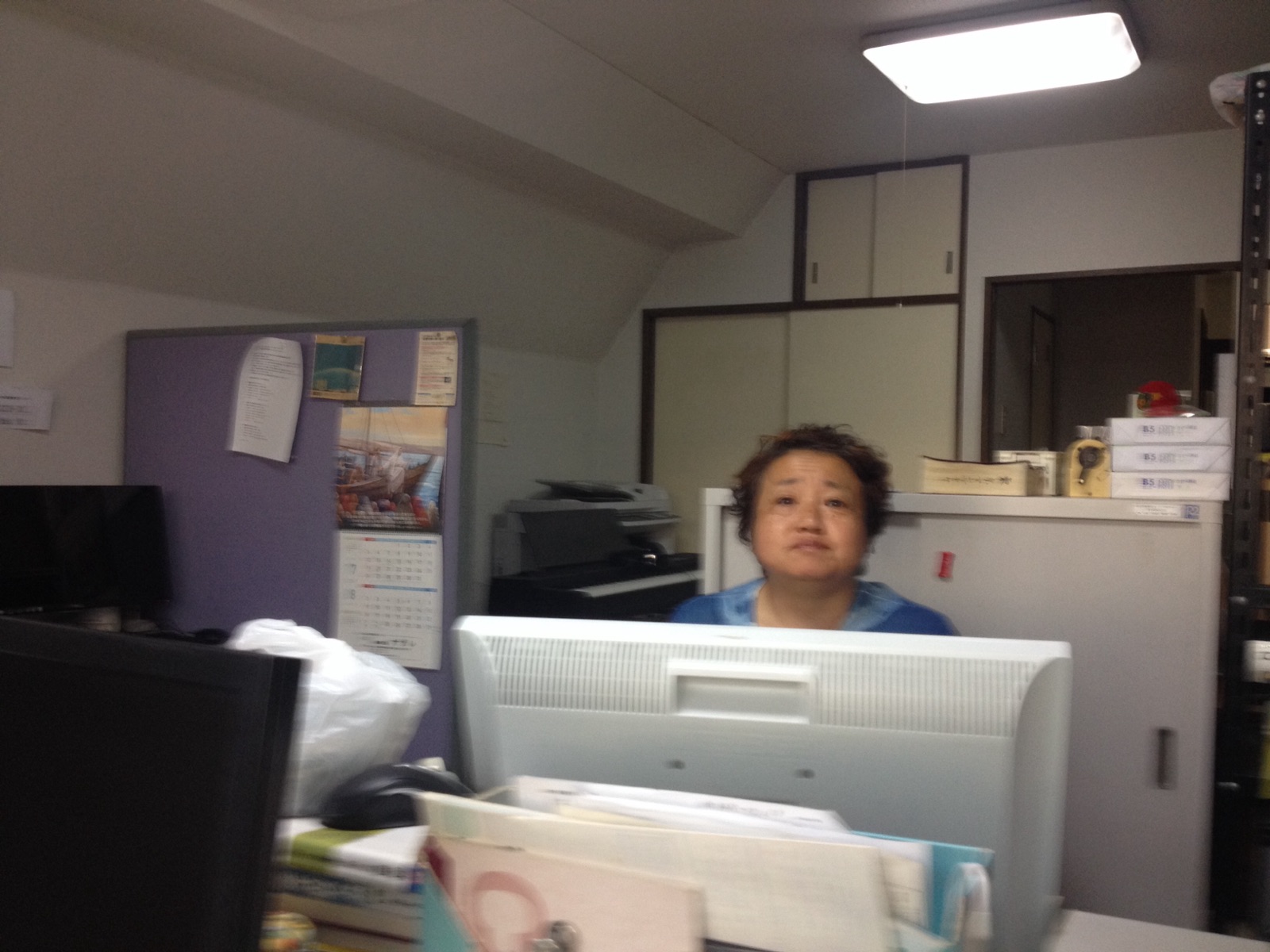 教会事務所に、早川さんが来て下さいました〜♪ お仕事が終わってこれから帰るそう…!amagai