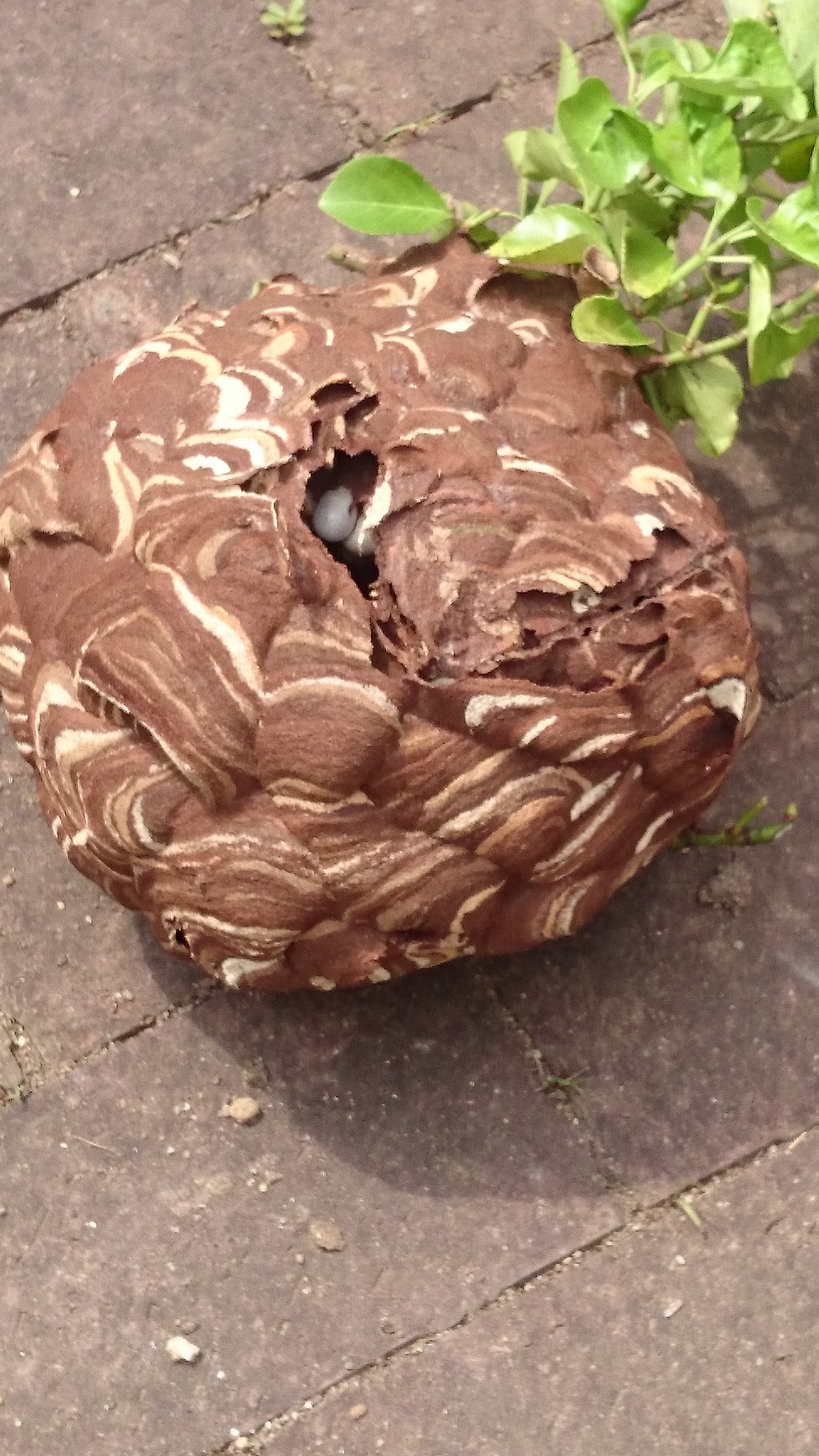 外に、働きに行っているハチたちが夕方戻って来るらしいです。 その時、巣がないと… 絶対に近づかないで下さい…と。 また夕方来て下さるとの事でした〜 フー良かったですね〜 amagai