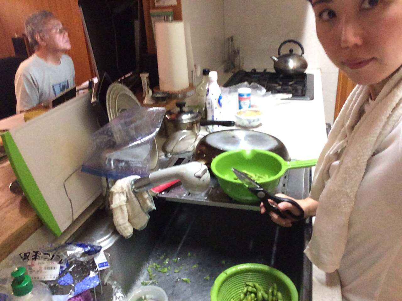 父は、仕事、私は教室に行ったヨハンナさんの代わりに枝豆を茹でます。 ミカエル